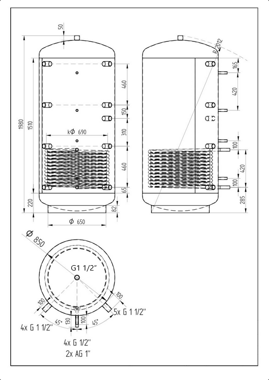 Detailný popis Akumulačná nádrž 1000l KXT1, d850