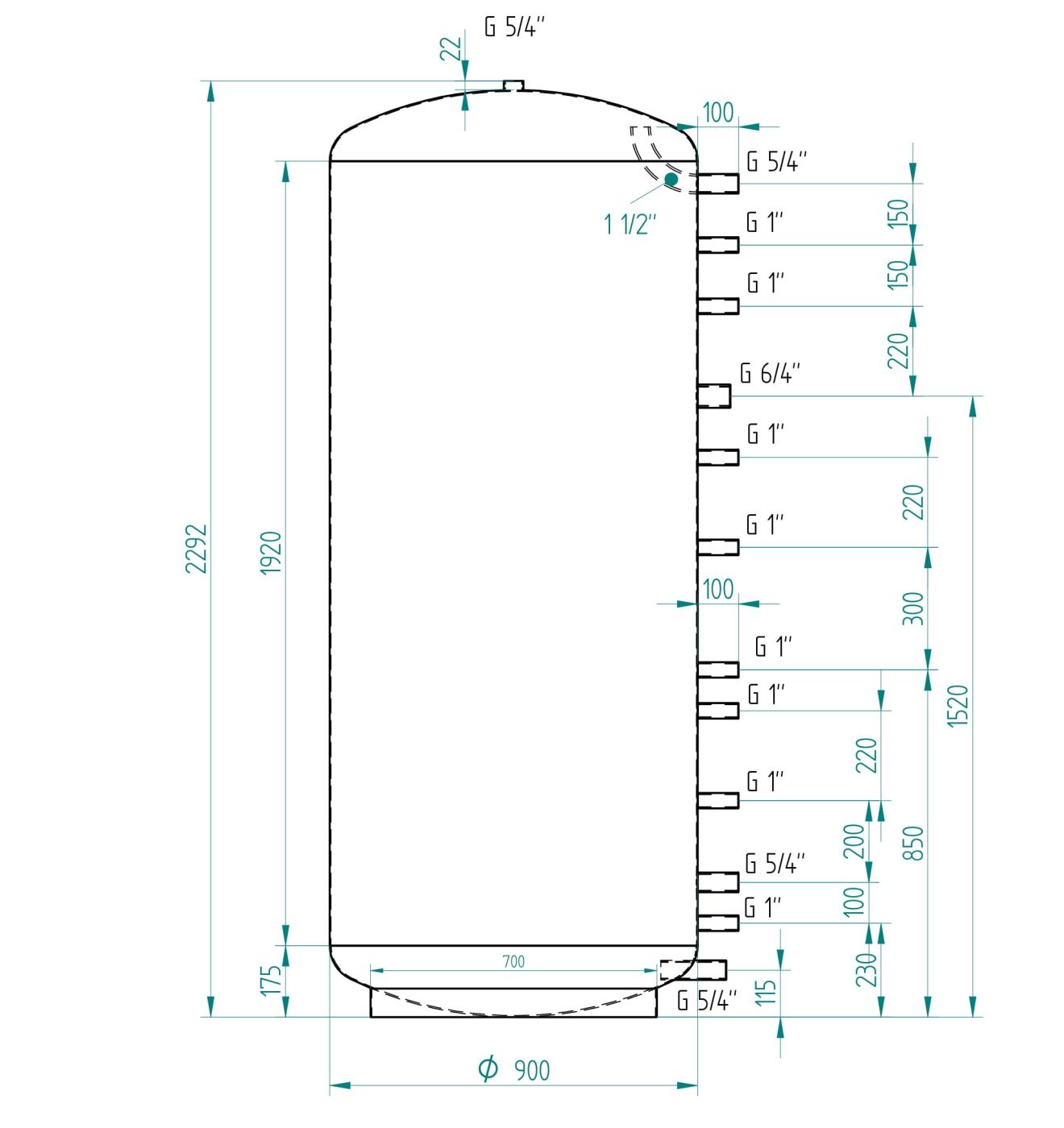 Detailný popis Akumulačná nádrž 1500l MG0, d900