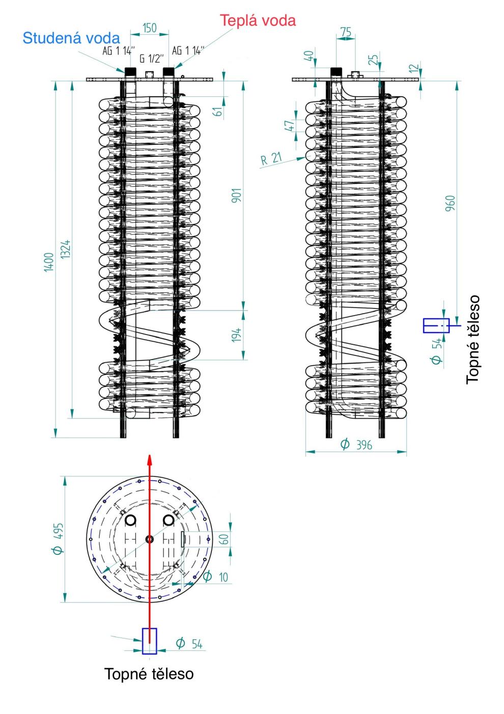Bližšia špecifikácia skrutkovacích vykurovacích jednotiek TJ 6/4 “ - TU