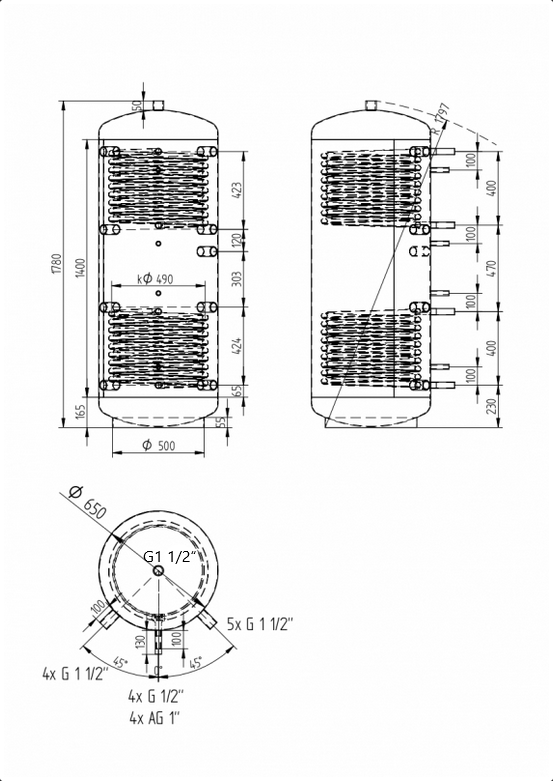Detailný popis Akumulačná nádrž 500l KXT2, d650