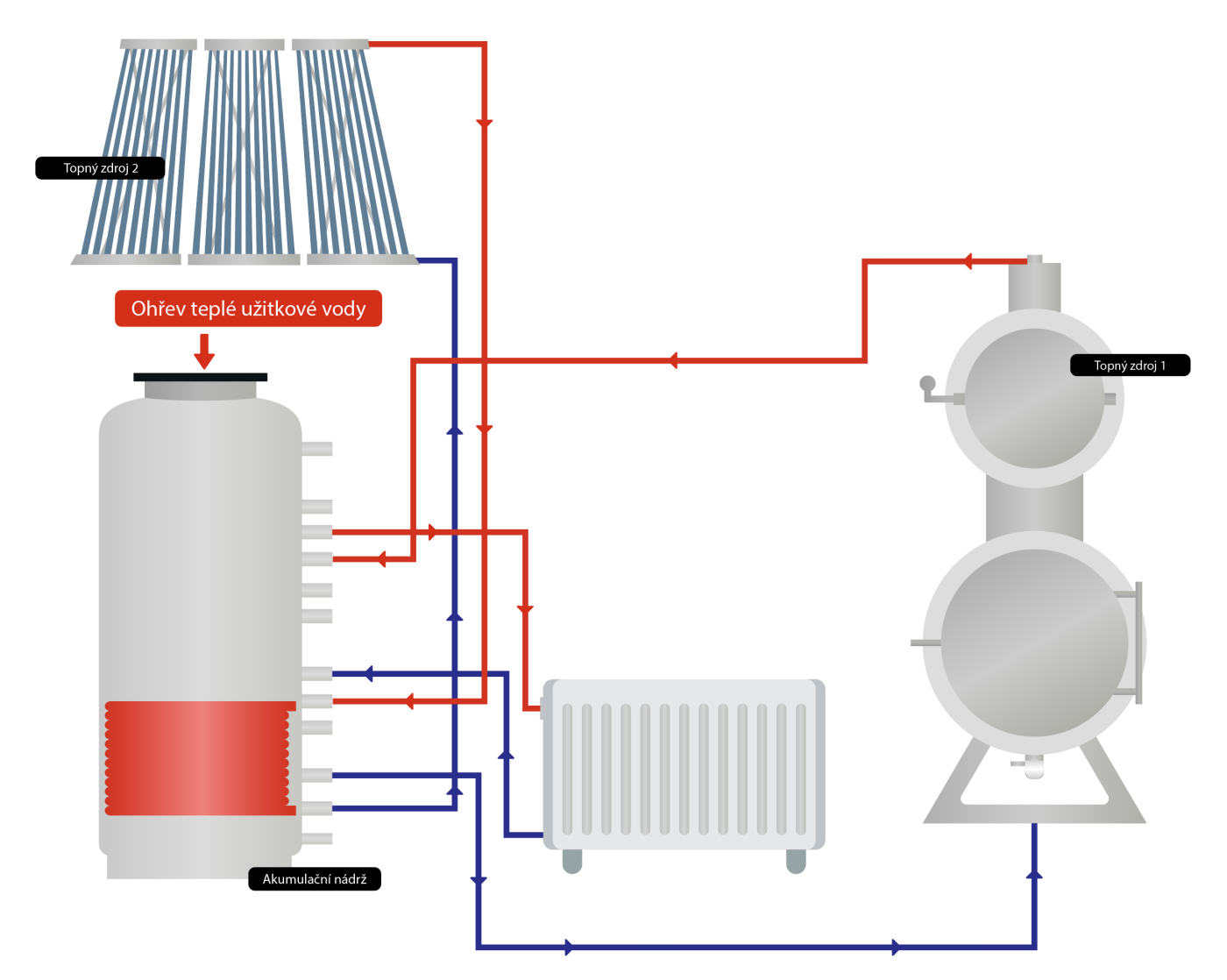 Akumulačná nádrž MT1 je vhodným riešením pre „uskladnenie“ prebytočného tepla. Táto nádrž umožňuje pripojenie na viacero zdrojov: tepelné čerpadlo, solárne kolektory. Možnosť osadenia výmenníkom TÚV.