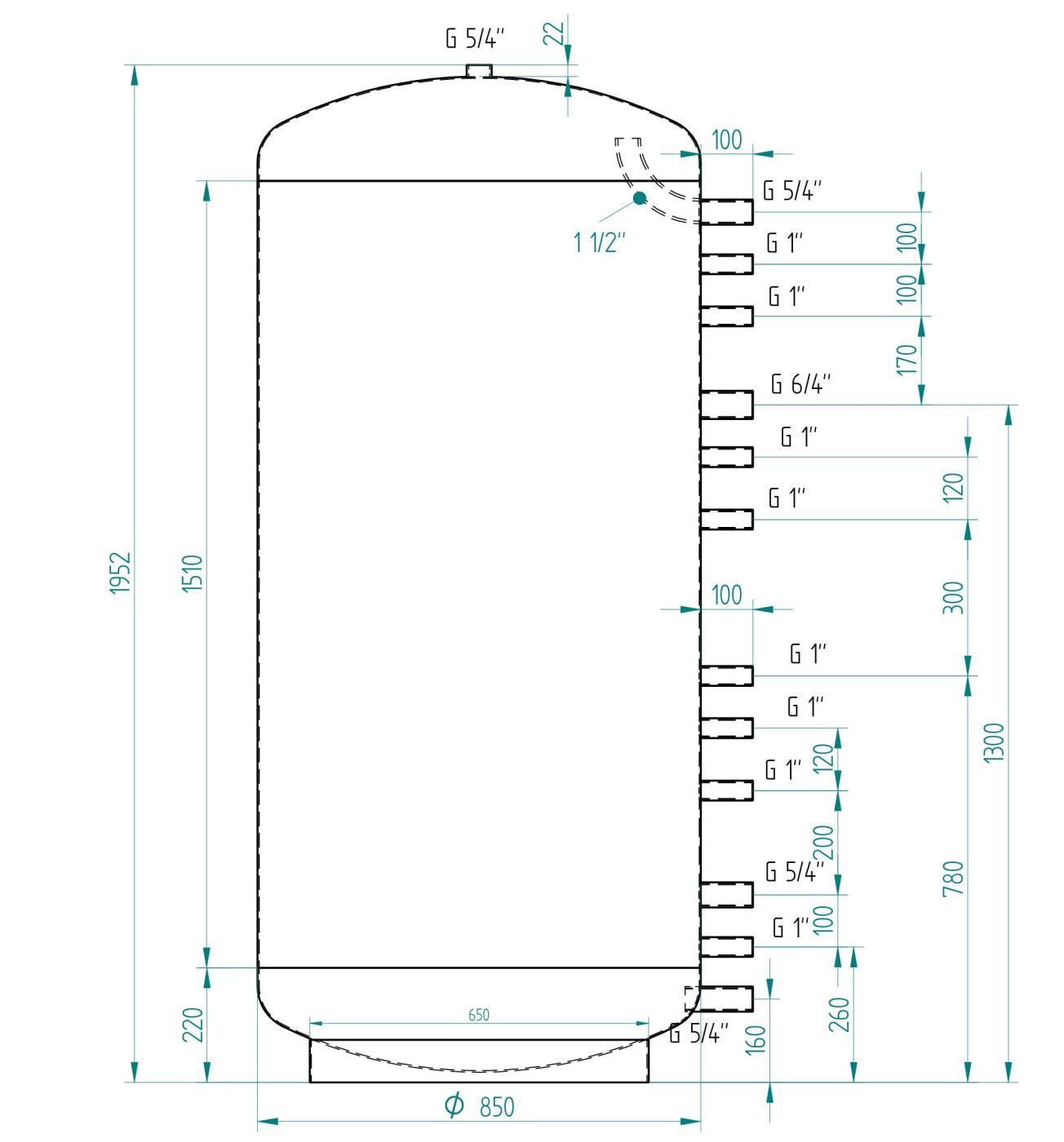 Detailní popis Akumulační nádrž 1000l MG0, d850