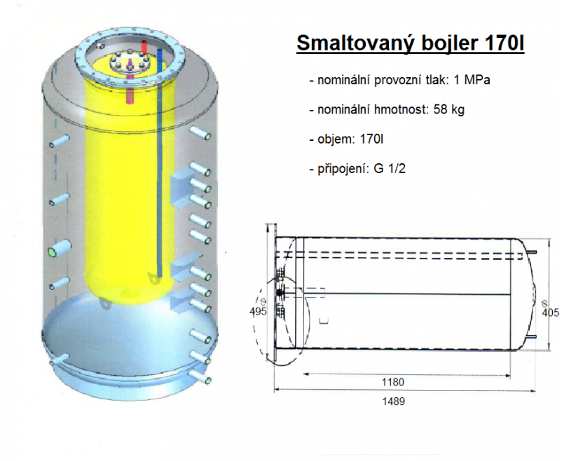 Detailní popis Akumulační nádrž 1000l MT0, d790 +170l bojler