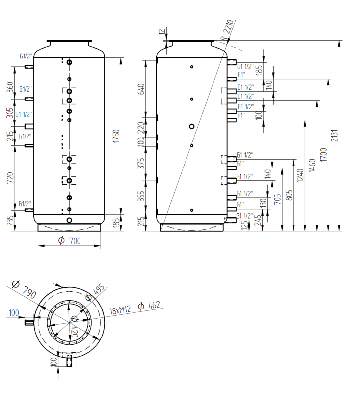 Akumulační nádrž 1000l MT0, d790 +170l bojler