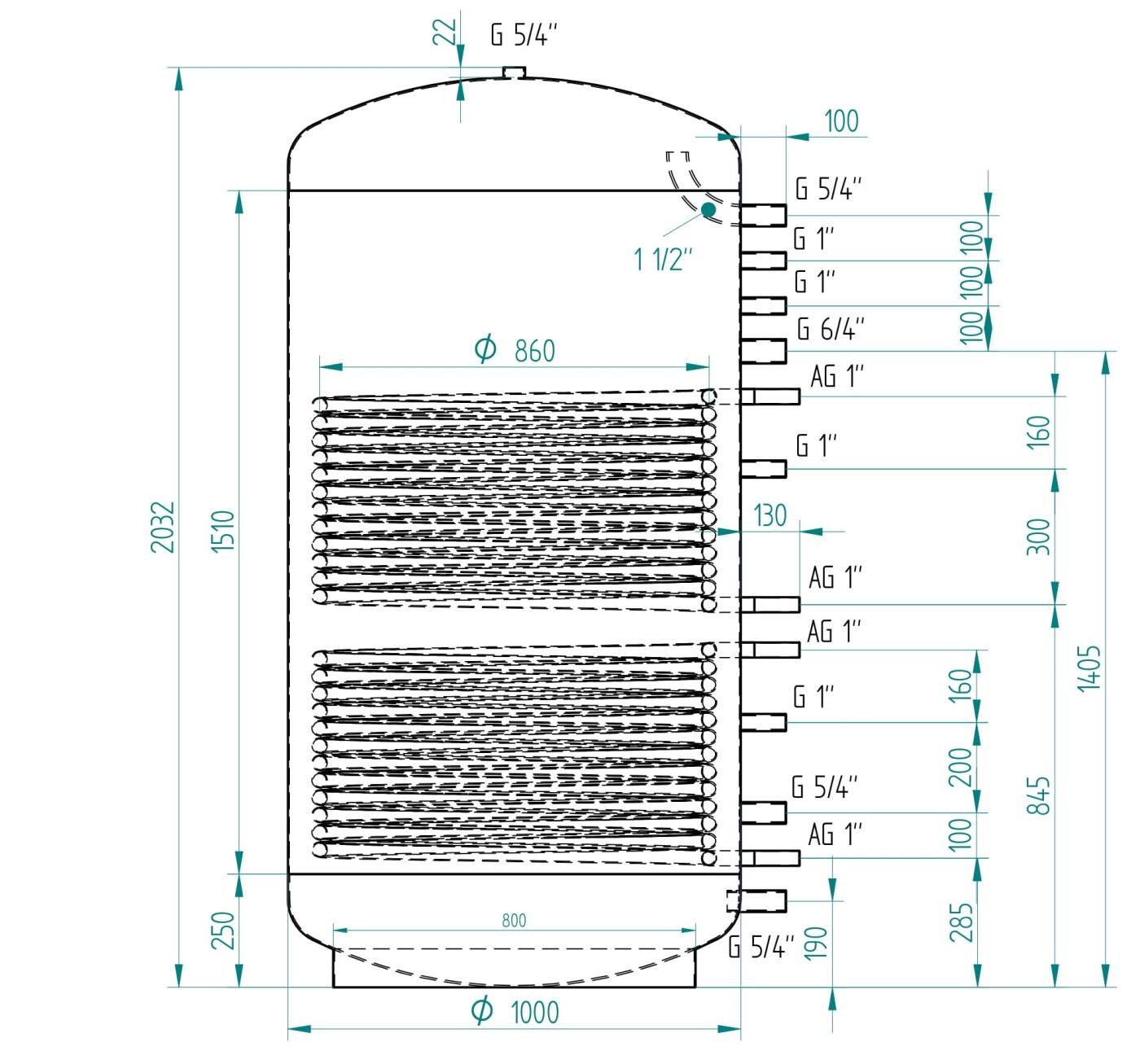 Detailní popis Akumulační nádrž 1500l MG2, d1000