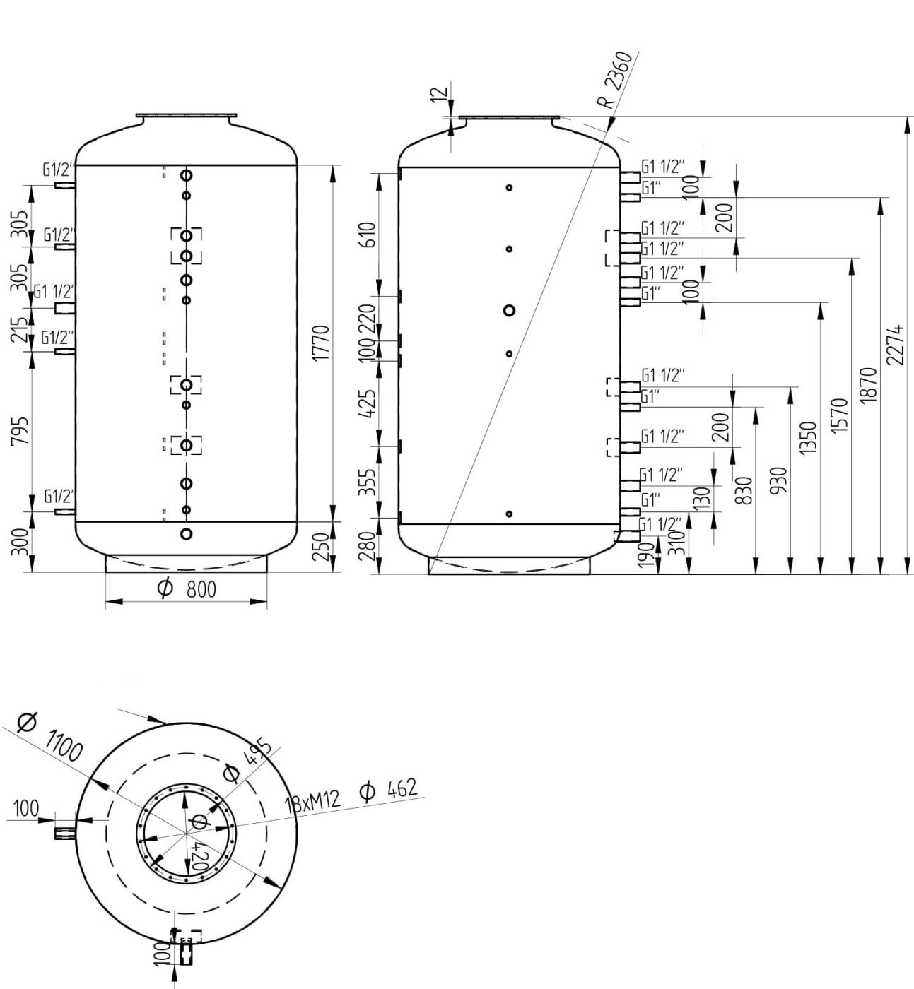 Detailní popis Akumulační nádrž 2000l MT0, d1100 +DN32