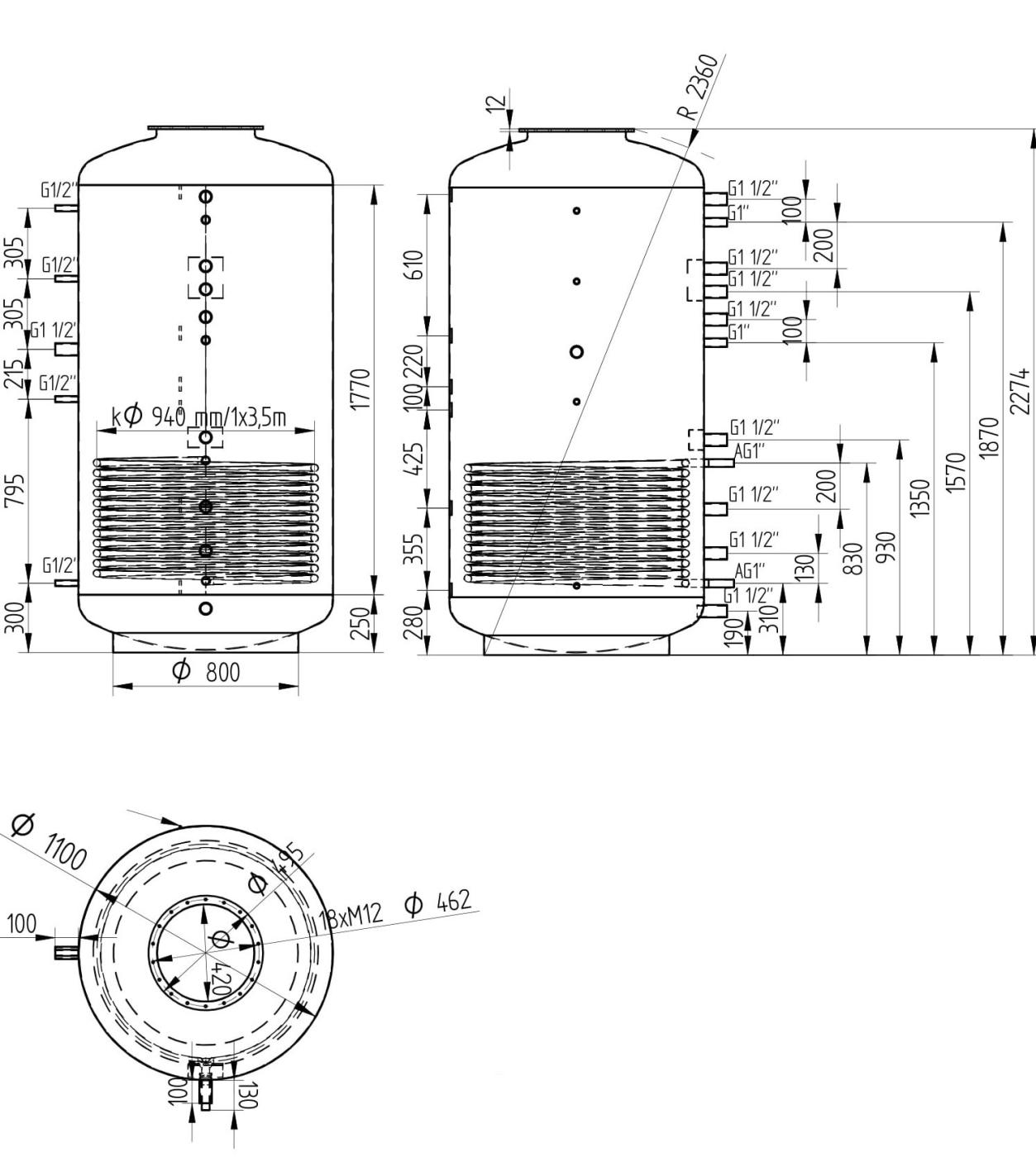 Detailní popis Akumulační nádrž 2000l MT1, d1100 +DN32