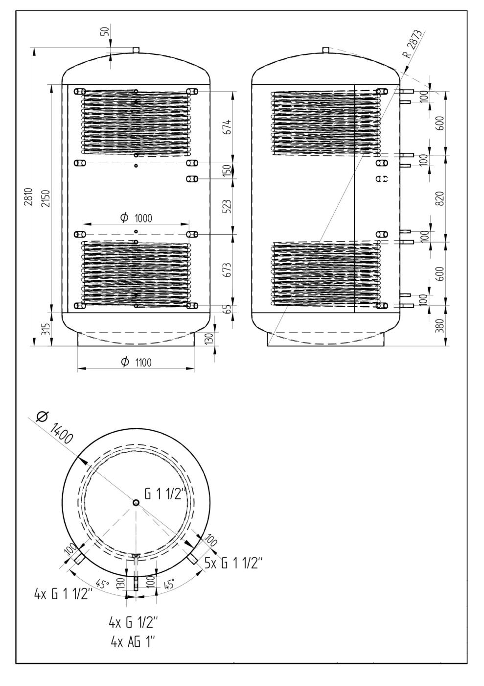 Akumulační nádoba KXT2 obsahuje 2 topné výměníky, kterými rozšiřuje nabídku užitných vlastností akumulačních nádob. Otopnou vodu je možné ohřívat pomocí slunečních kolektorů, tepelného čerpadla a dalších zdrojů.