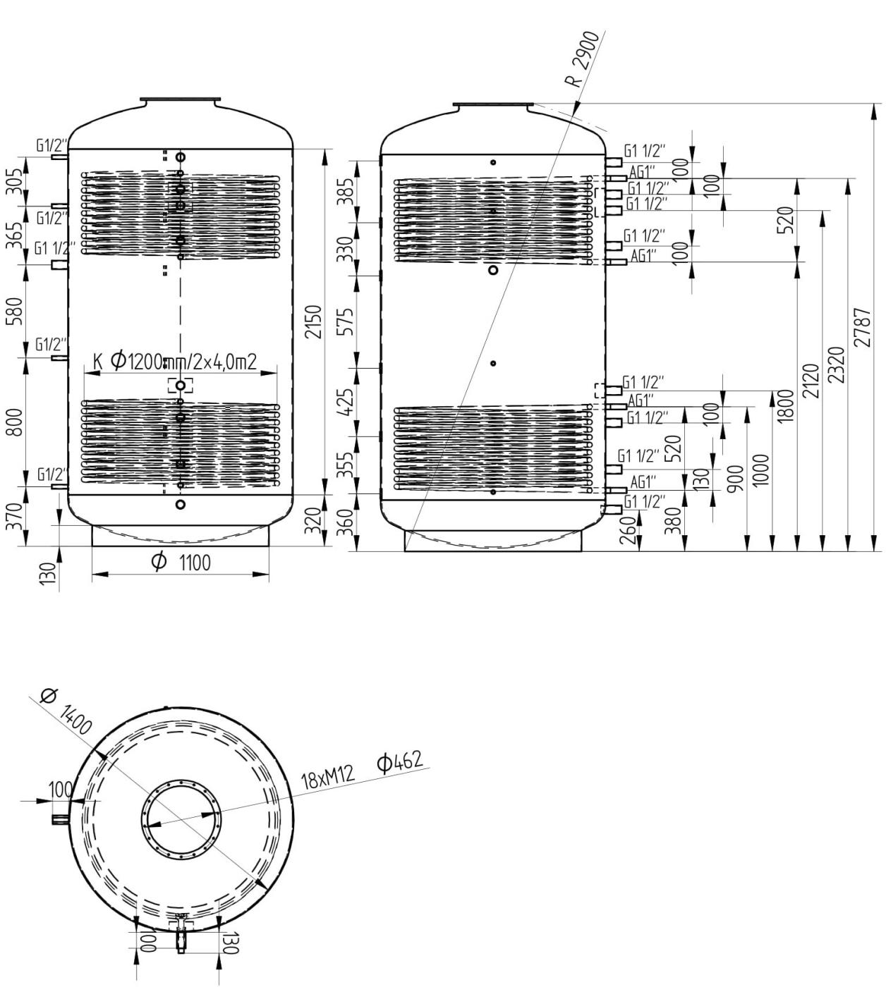 Detailní popis Akumulační nádrž 4000l MT2, d1400 +DN32