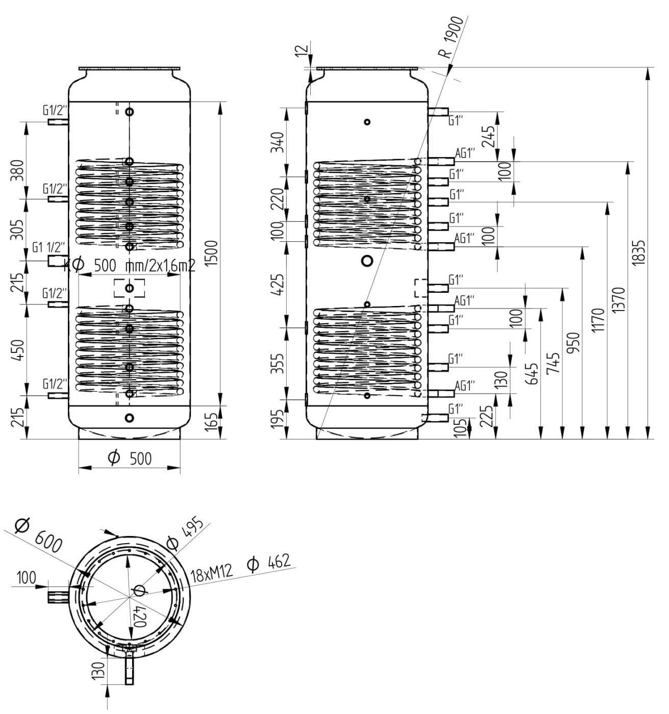 Detailní popis Akumulační nádrž 500l MT2, d600 +DN32