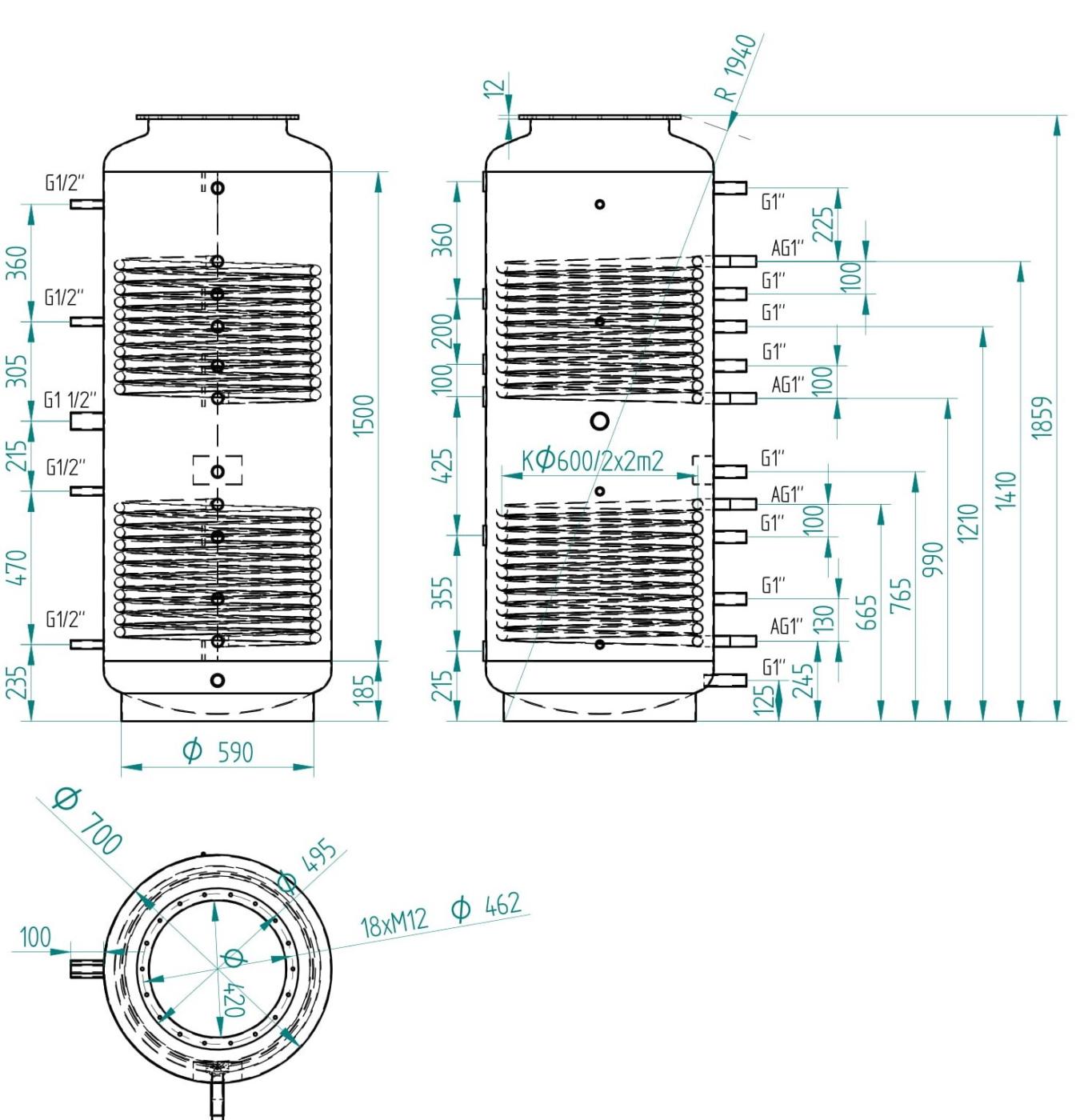 Detailní popis Akumulační nádrž 650l MT2, d700 +DN32
