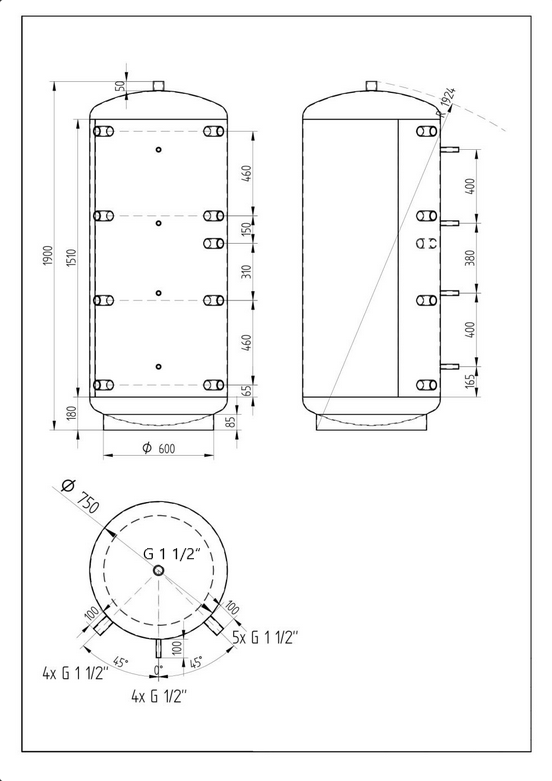 Detailní popis Akumulační nádrž 750l KXT0, d750