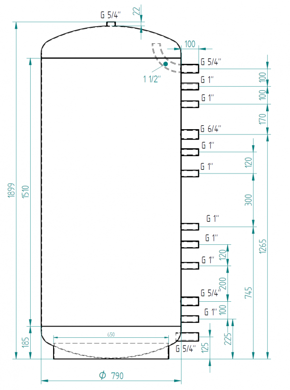 Detailní popis Akumulační nádrž 800l MG0, d790