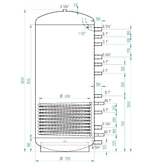 Detailní popis Akumulační nádrž 800l MG1, d790