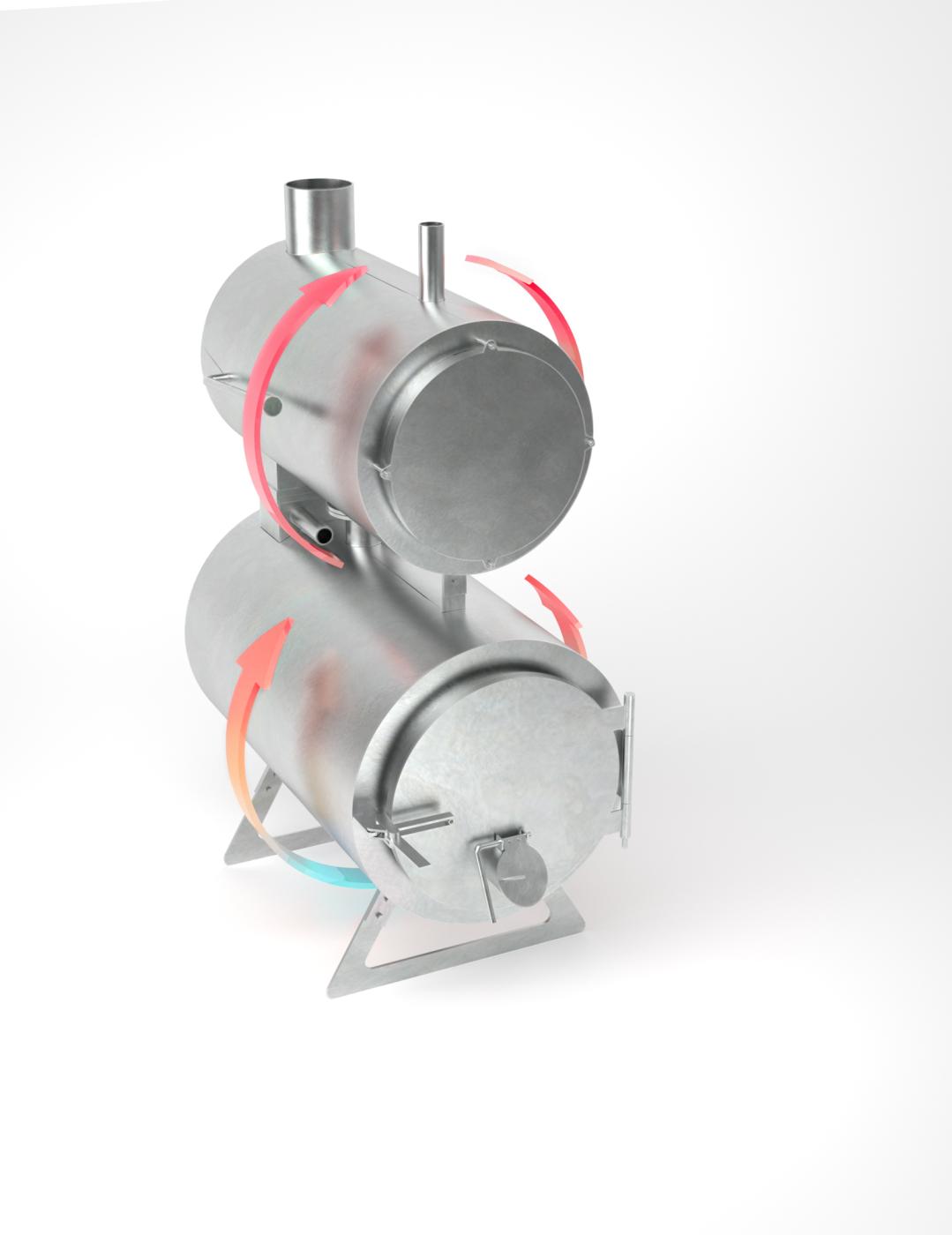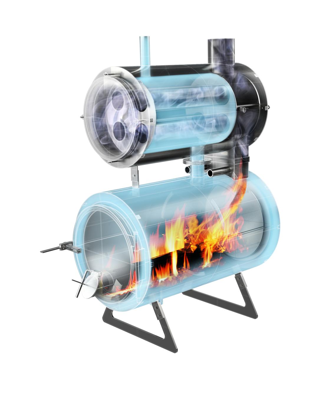- optimálny ohrev vykurovacej vody je zaručený predohrevom v medziplášti ohniska a dohrevom vo výmenníku