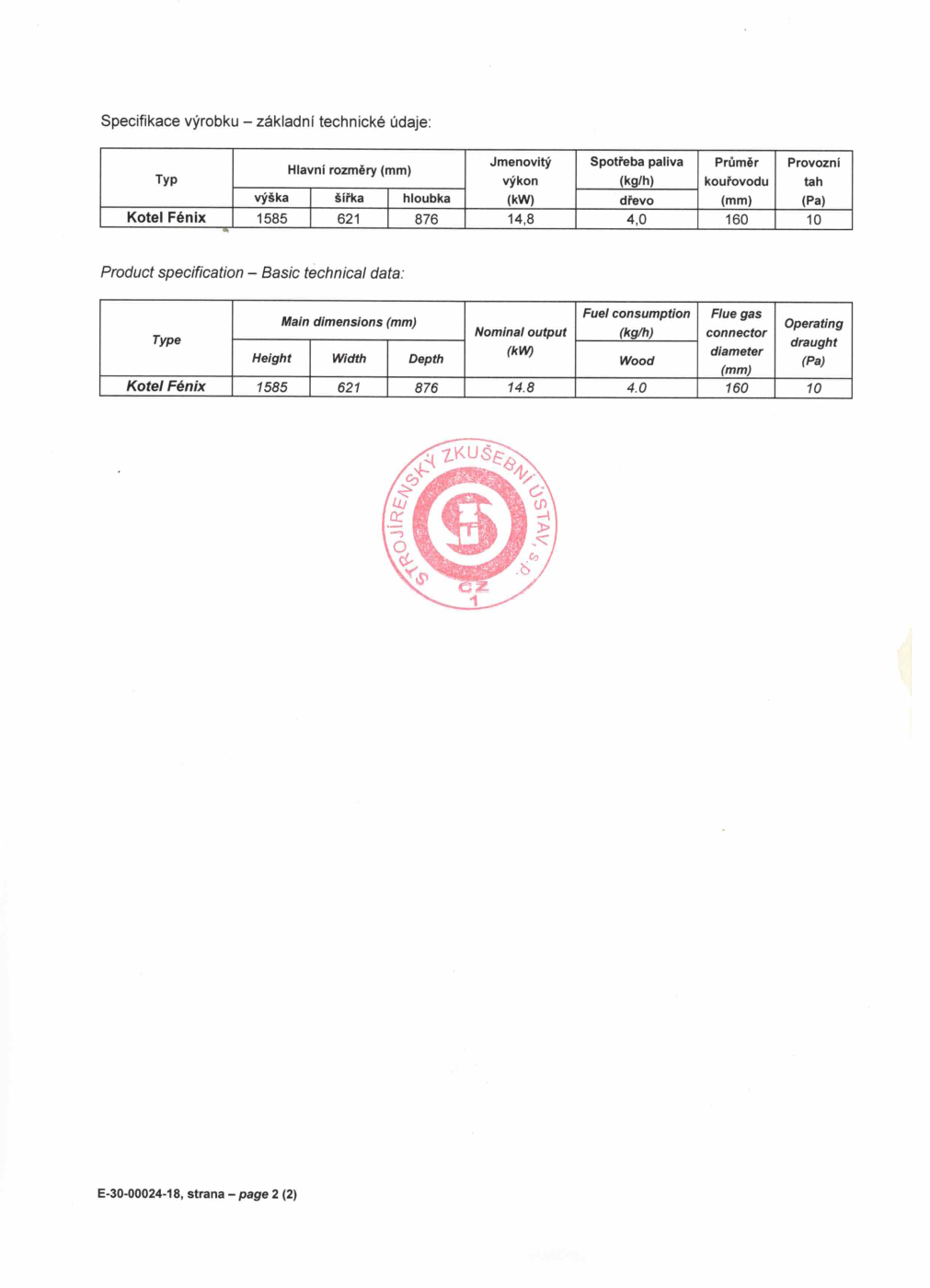 - Certifikácia Strojárskym skúšobným ústavom Brno, š.p.