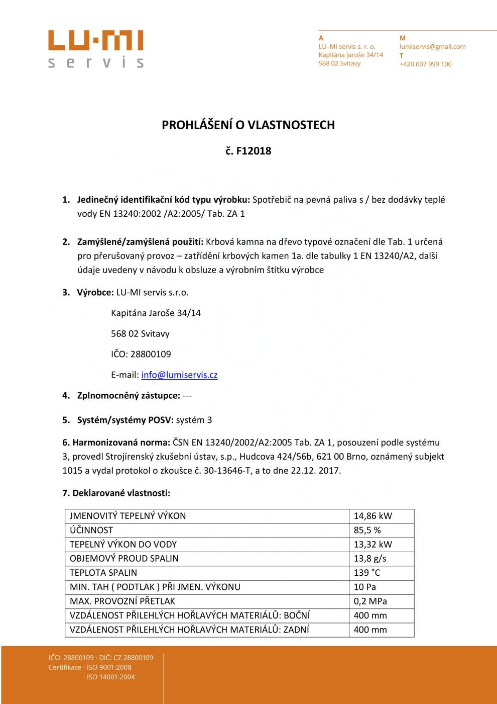 - Výkon menovitý 14,8kW