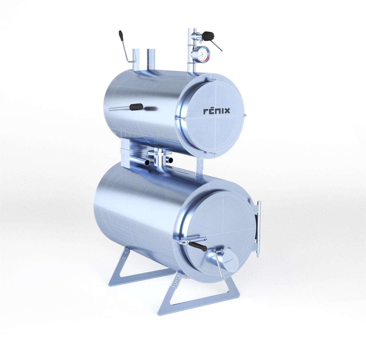 - vonkajší plášť spaľovacej komory a plášť sekundárneho tepelného výmenníka je uložený vo vrstve tepelnej izolácie, ktorá bráni úniku tepla a zvyšuje účinnosť Kotla Fénix