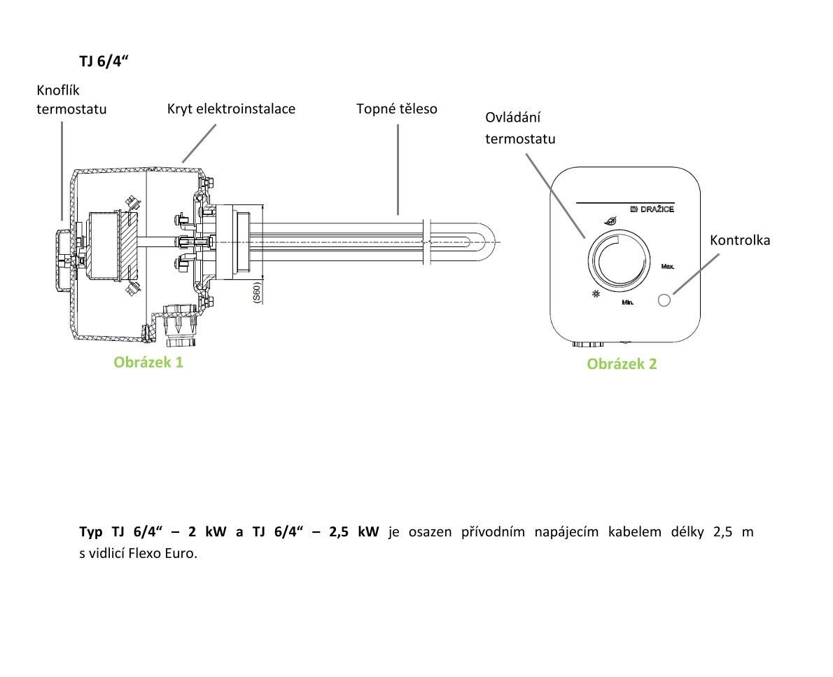 - Vykurovacia jednotka sa skladá z elektrického vykurovacieho telesa s pripojovacím závitom **G 6/4“**