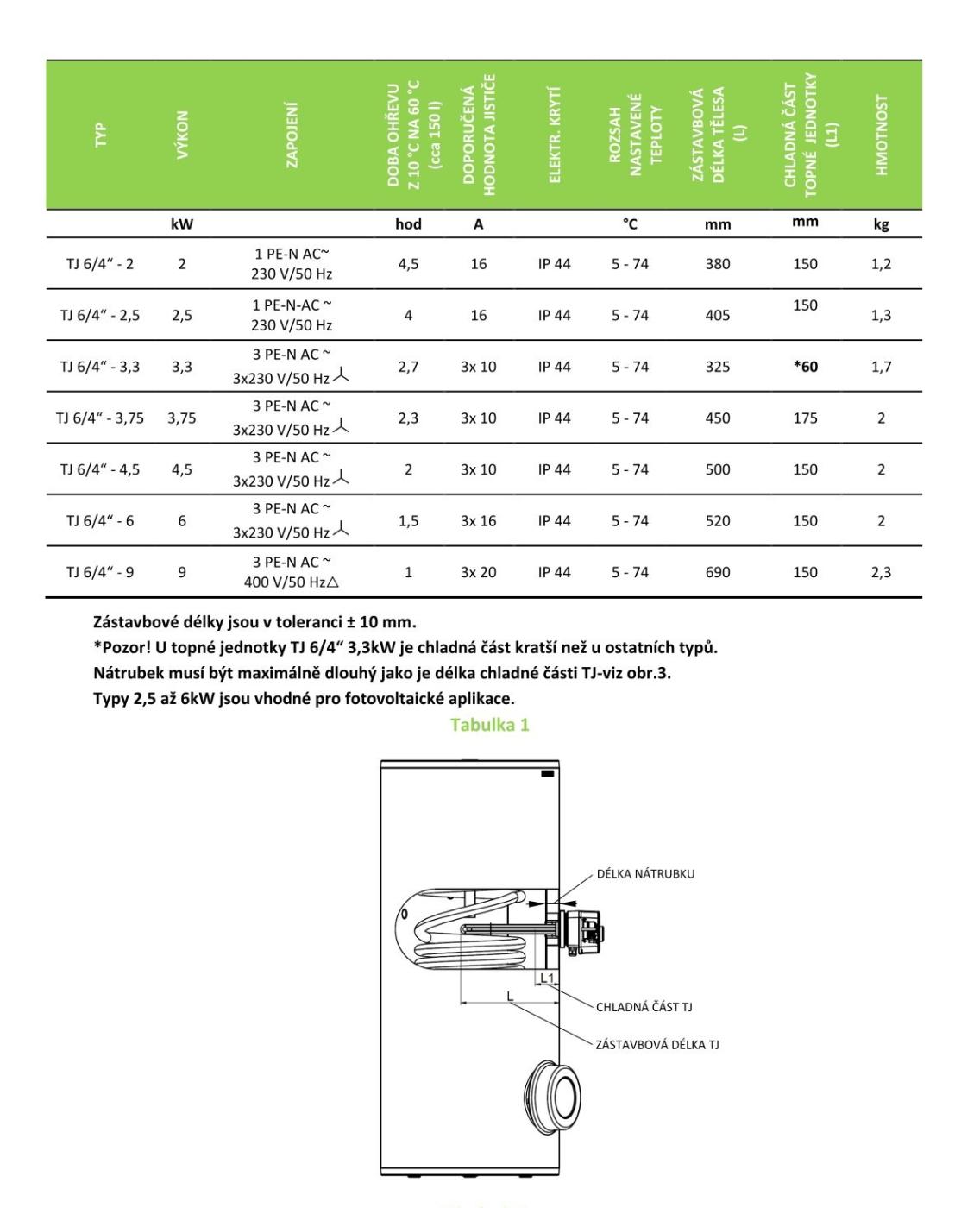 Detailný popis Trojfázová skrutkovacia vykurovacia jednotka TJ 6/4“ - 9kW